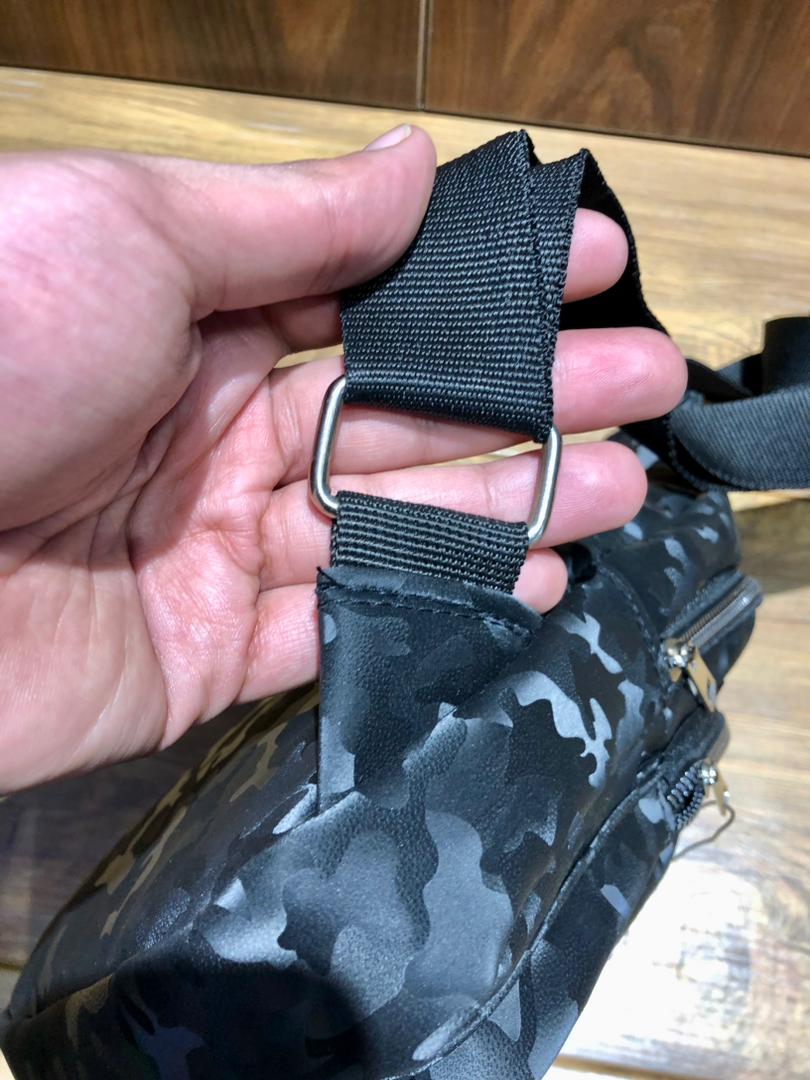 • در بخش پشت بادی بگ پارچه برزنتی براق چریکی کار شده است.