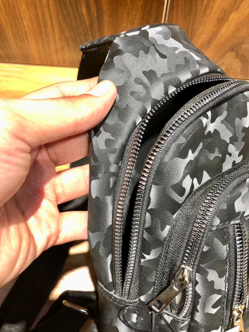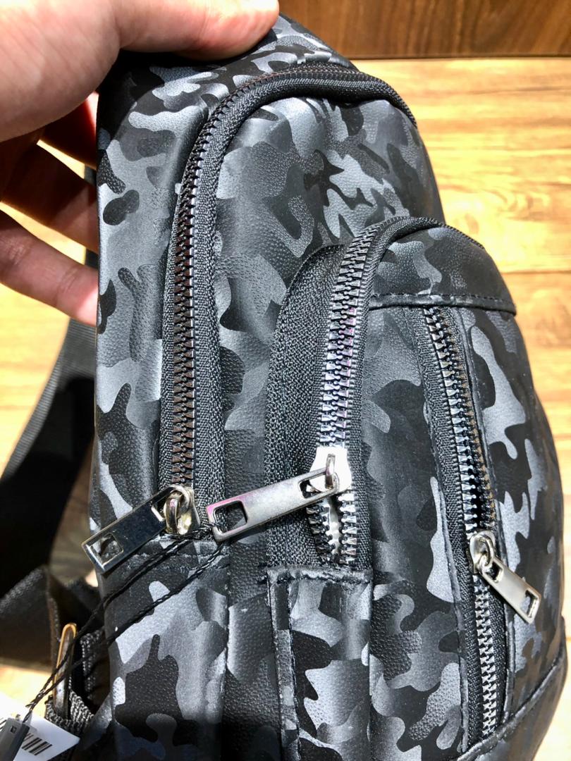 کیف بادی بگ طرح پارچه براق چریکی رنگ مشکی طوسی