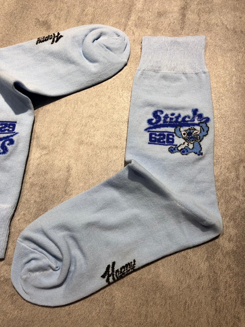 جوراب ساقدار اسپرت برند Happy O Mappy (هپی و مپی) طرح کارتون استیچ (Stitch) رنگ آبی