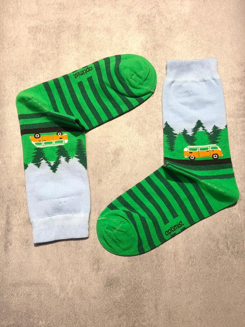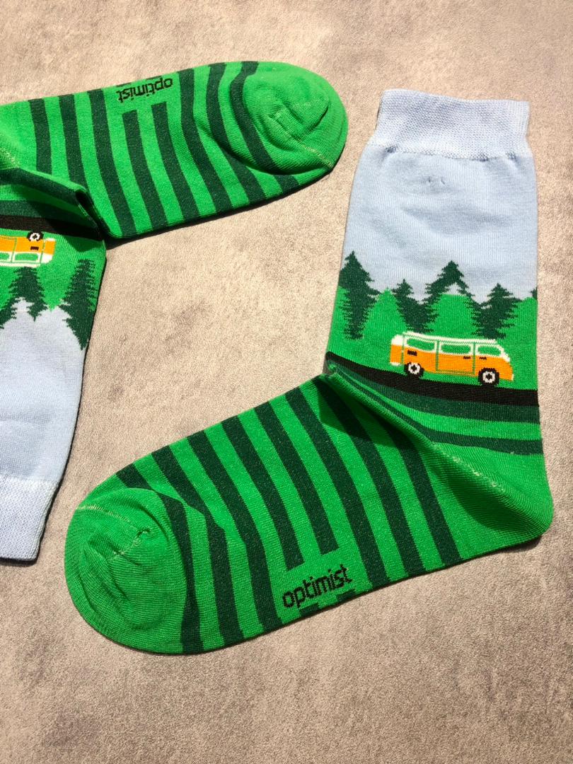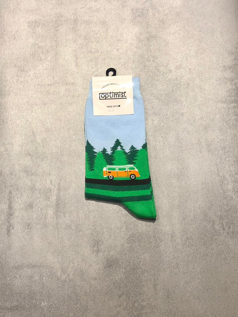 جوراب ساقدار اسپرت برند Optimist طرح طبیعت سبز و ماشین ون نارنجی