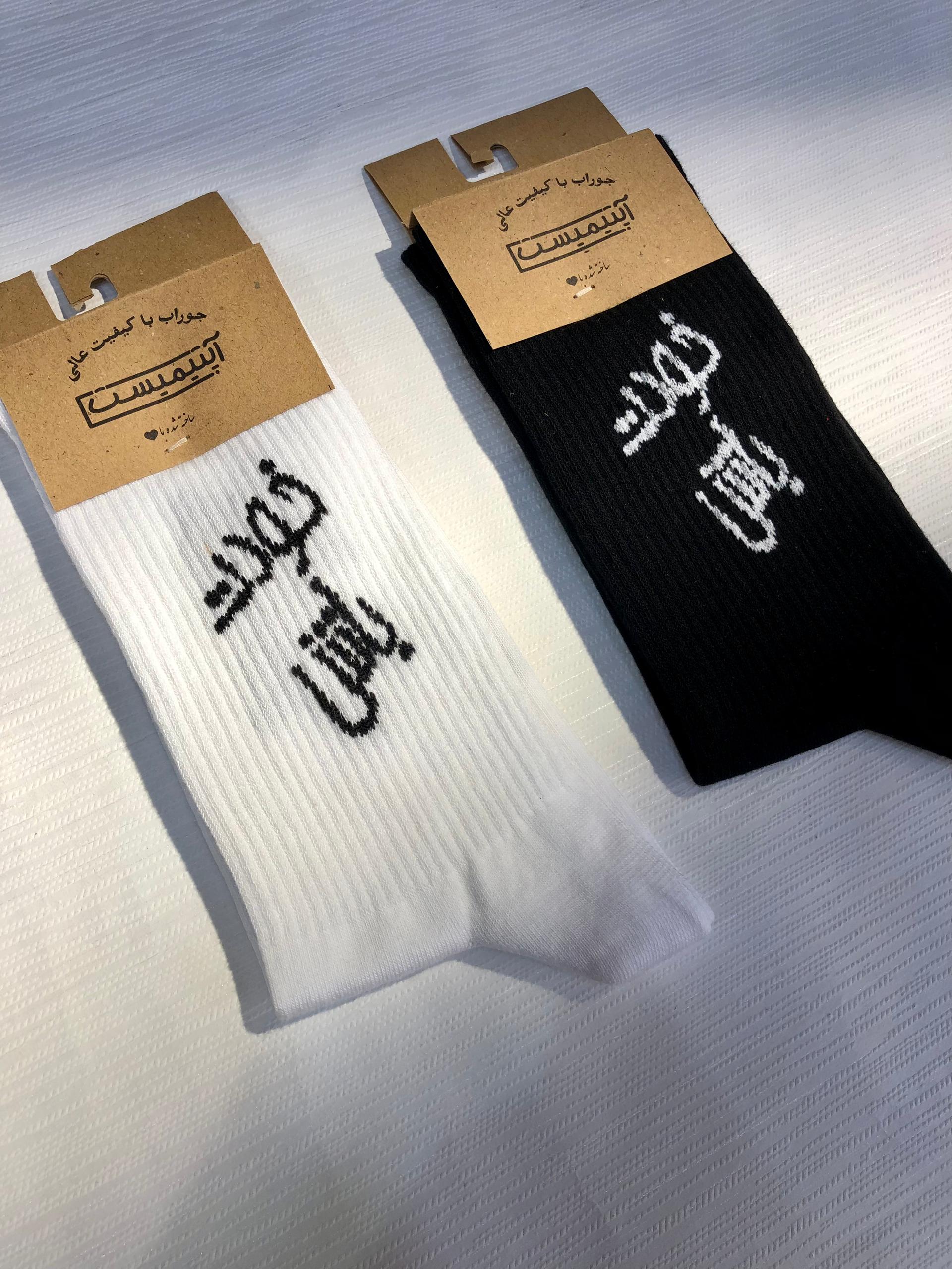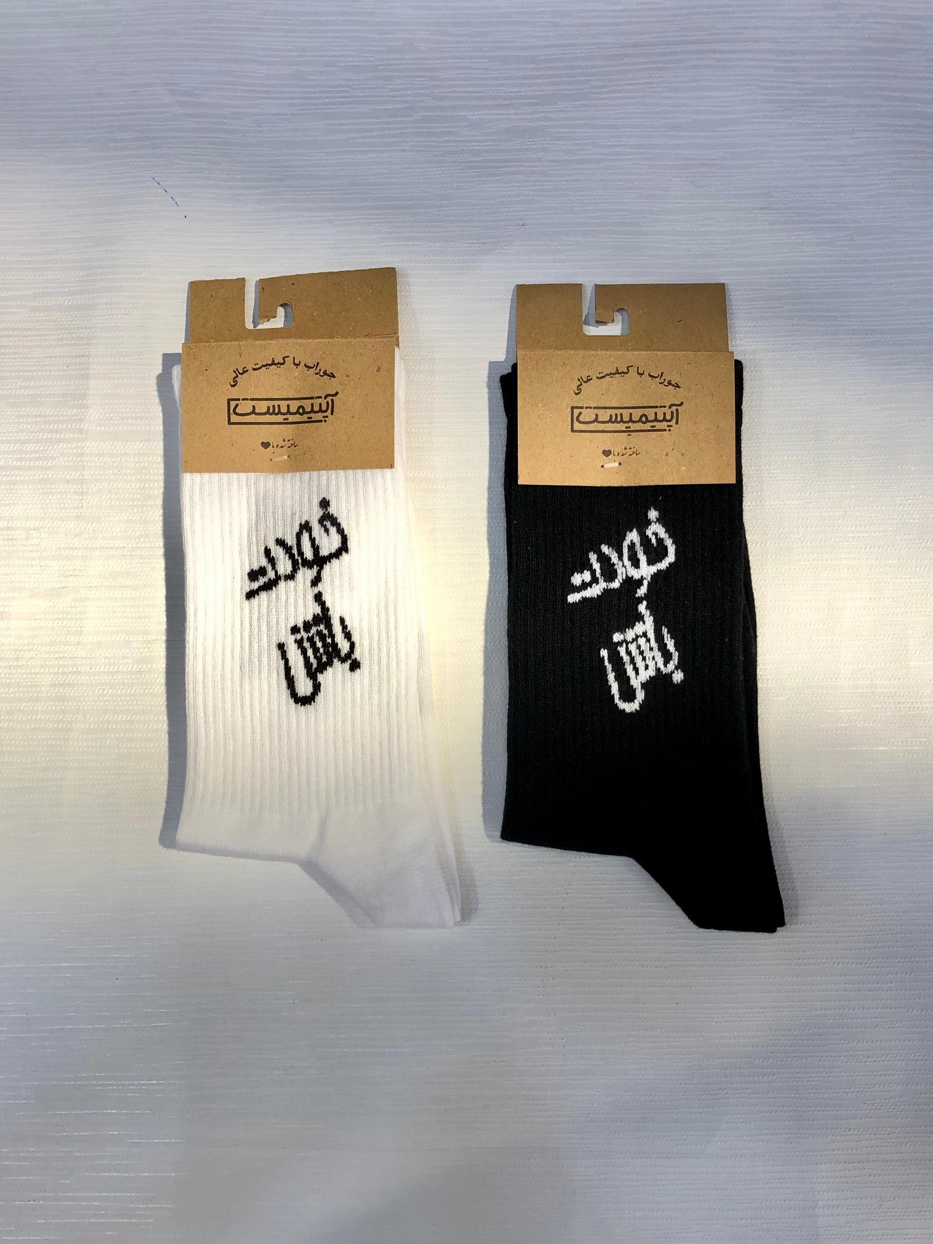 خانهجورابجوراب مردانه جوراب ساقدار کش انگلیسی اسپرت برند Optimist طرح تکست فارسی خودت باش