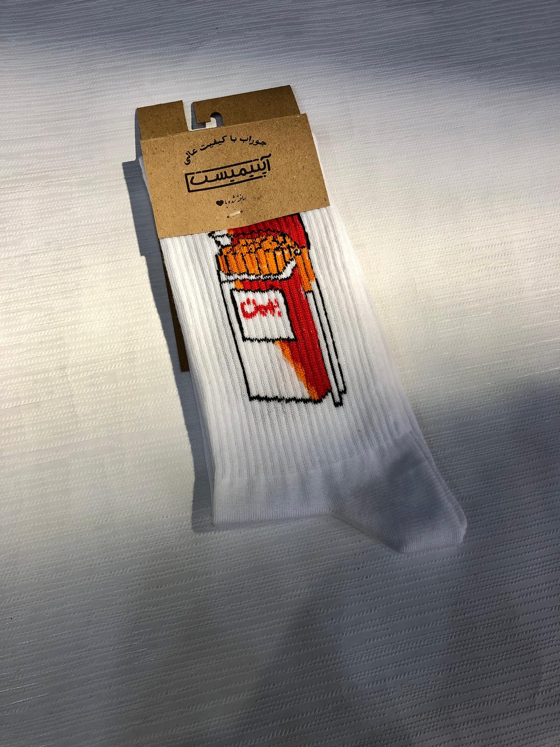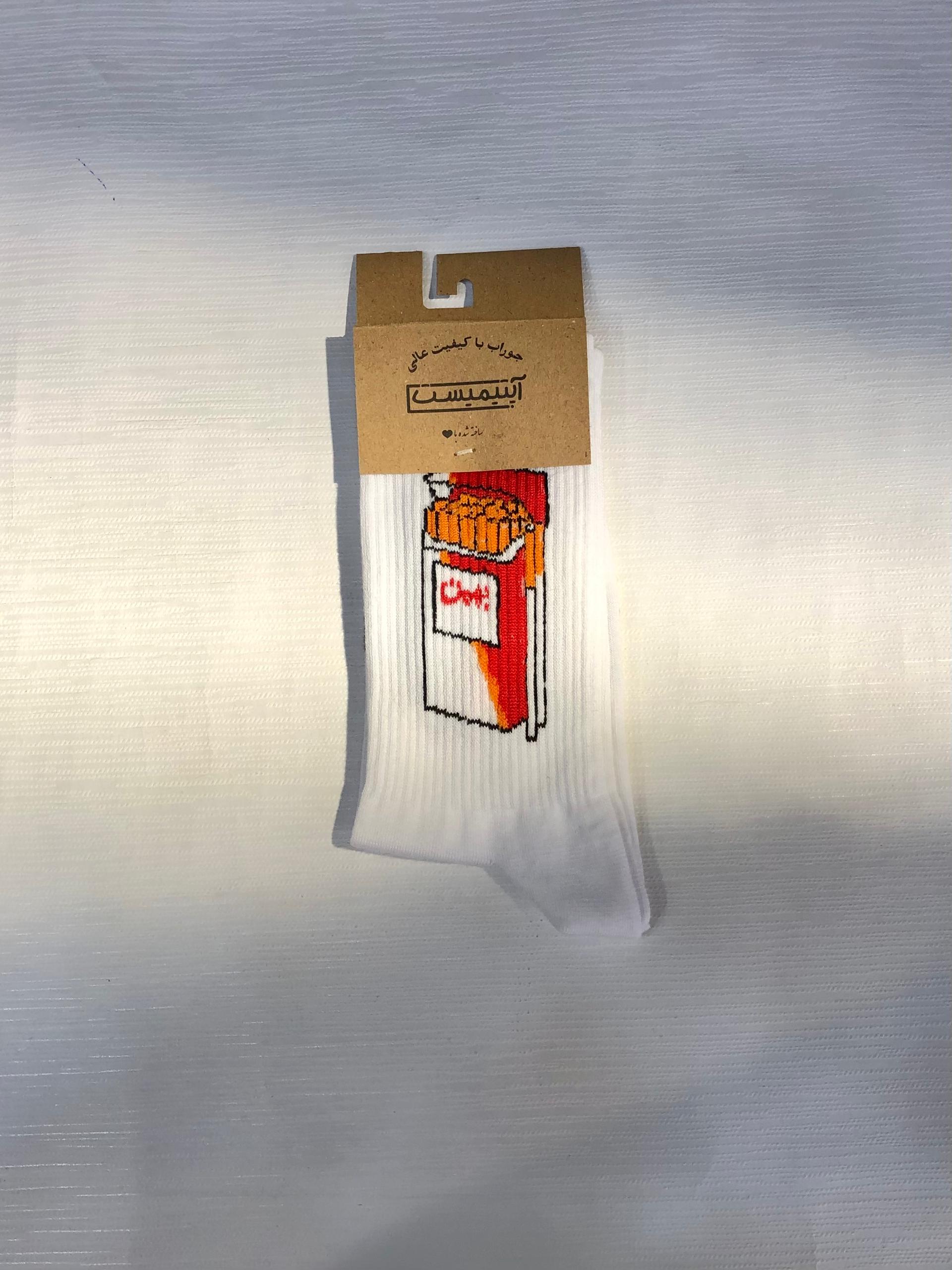 جوراب ساقدار کش انگلیسی اسپرت برند Optimist طرح سیکار بهمن رنگ سفید