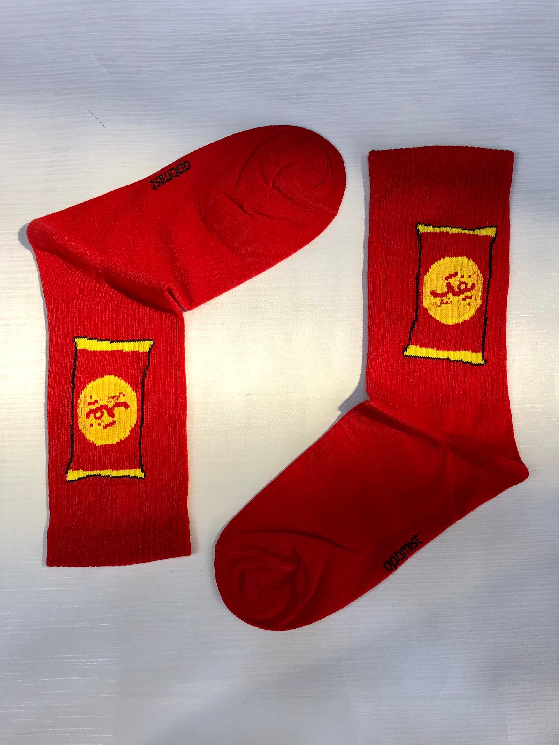 جوراب ساقدار کش انگلیسی اسپرت برند Optimist طرح پفک نمکی قرمز