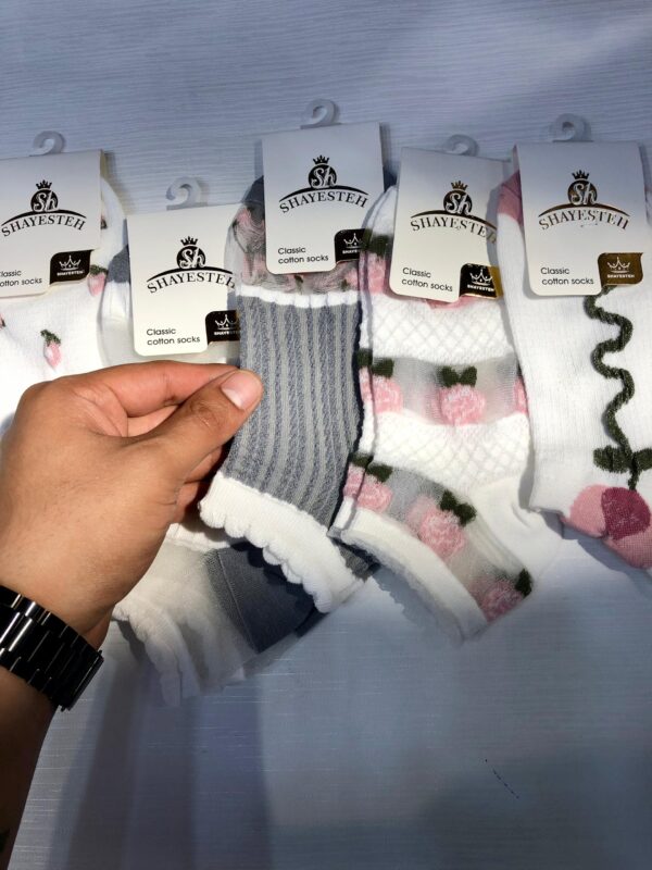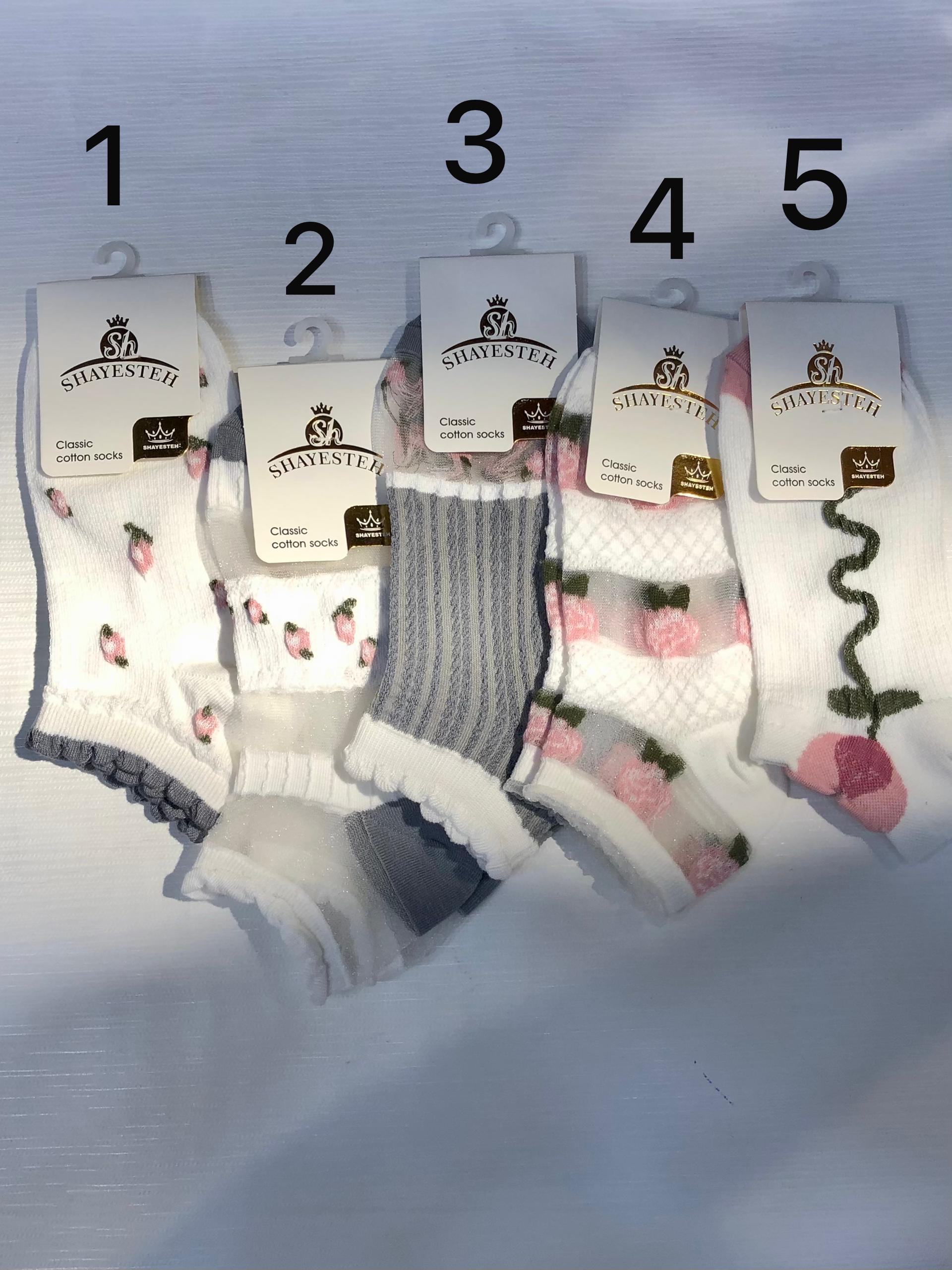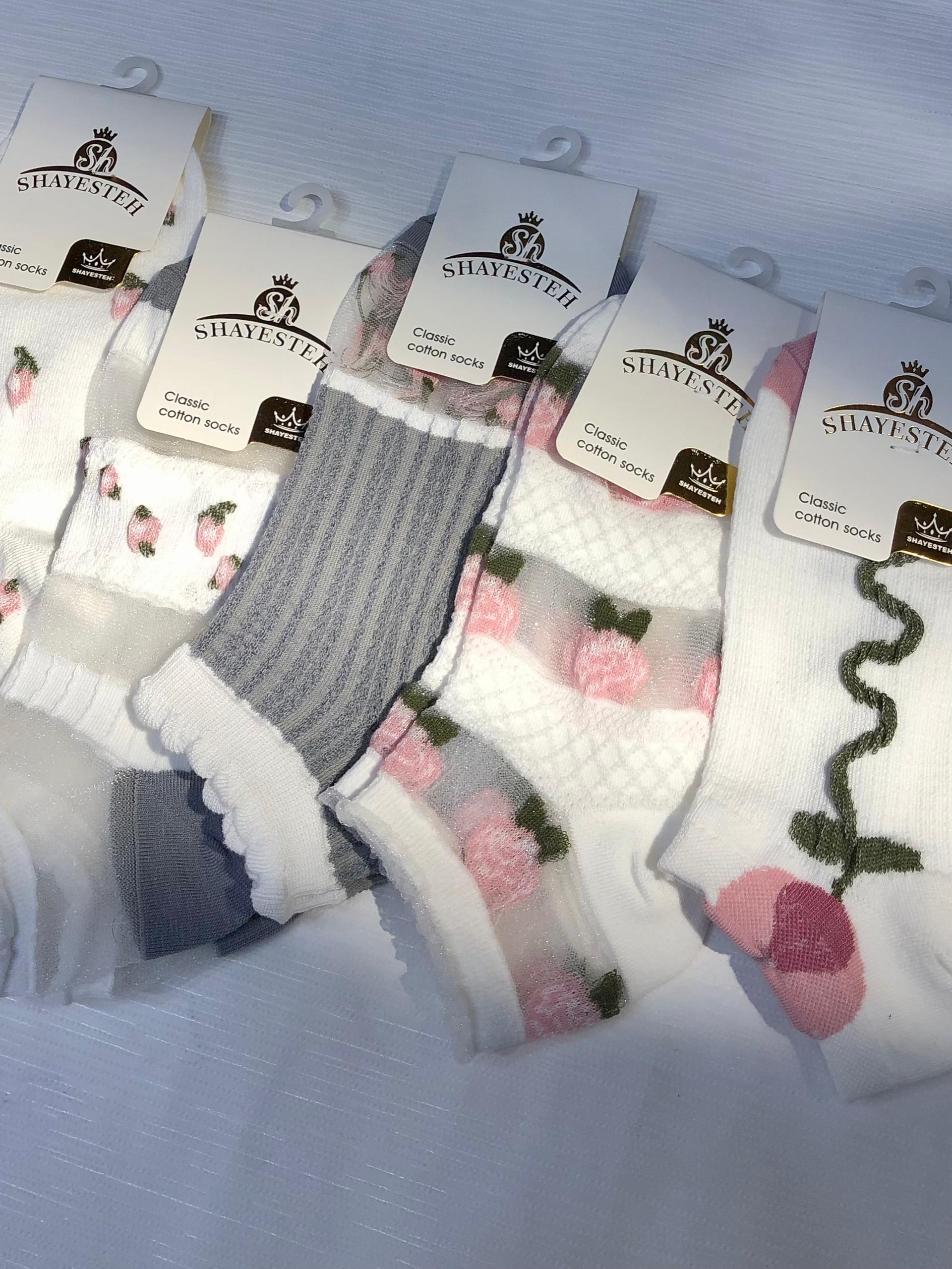 جوراب مچی زنانه برند Shayesteh (شایسته) طرح توری نازک طیف صورتی و سفید طوسی