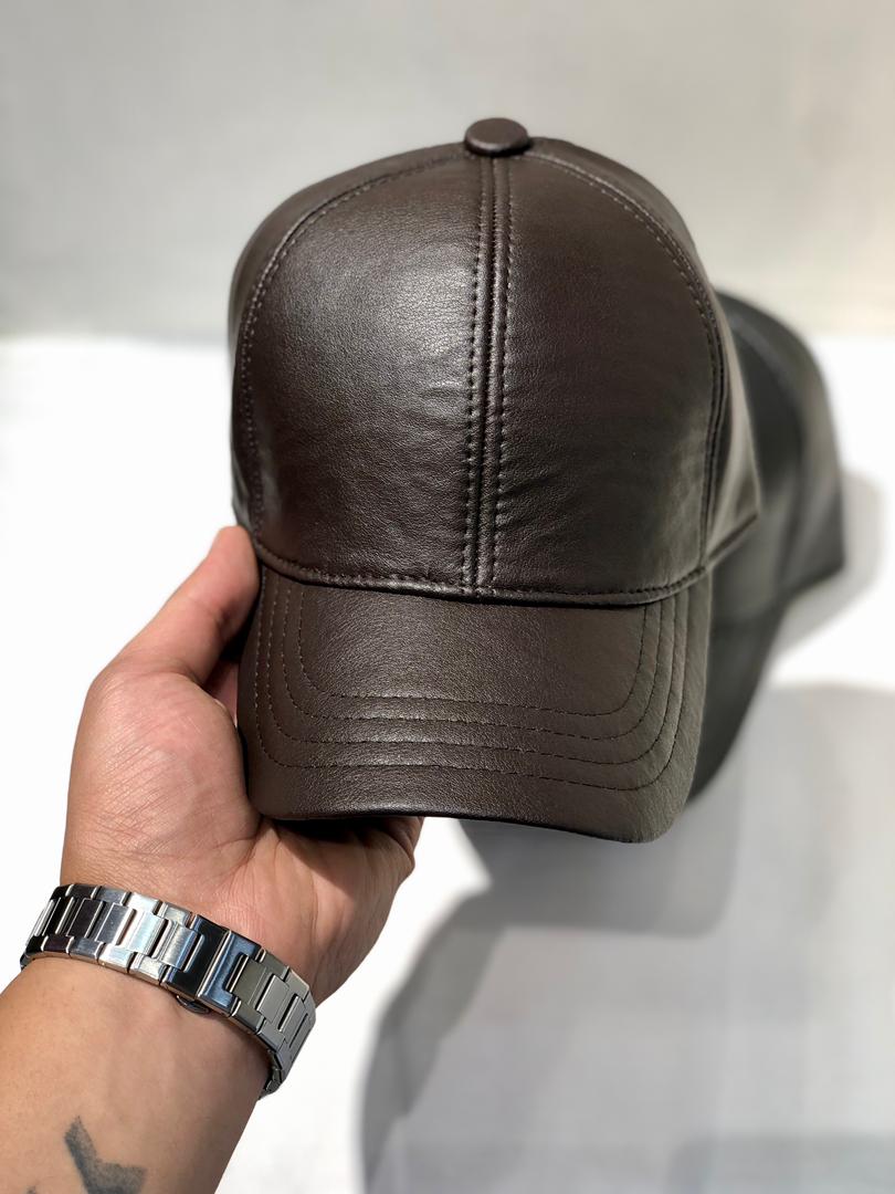 کلاه نقابدار بیسبالی ساده طرح چرم مشکی و قهوه ای