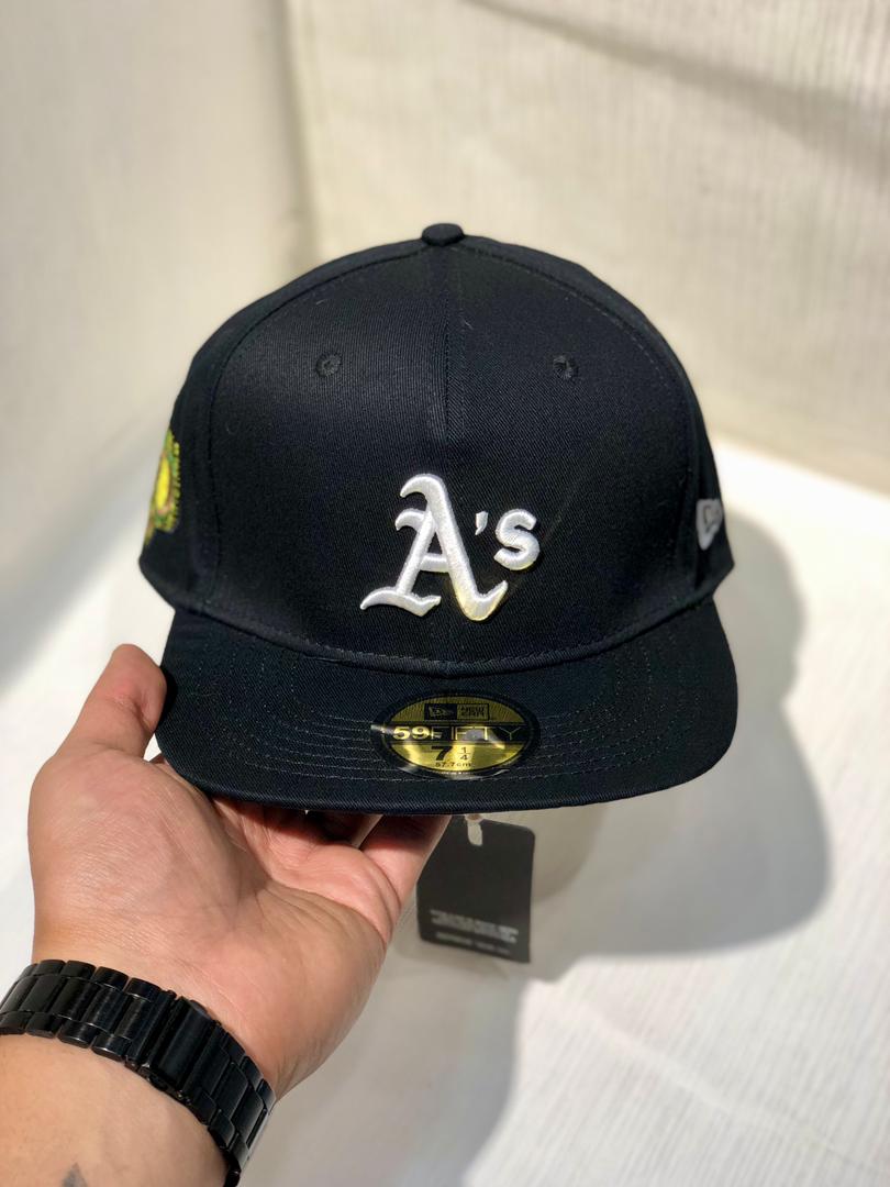 کلاه نقابدار بیسبالی کپ برند نیو ارا سایز 1/4 7 طرح As (اکلند اتلتیک) رنگ مشکی