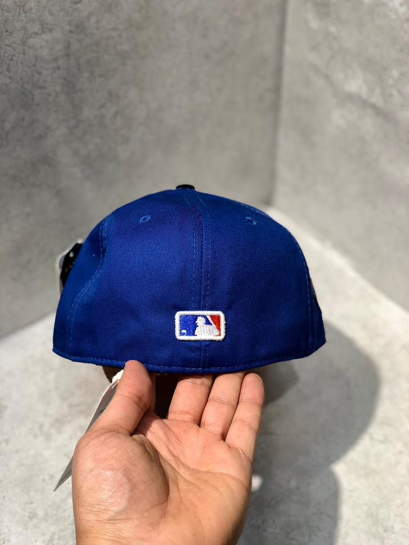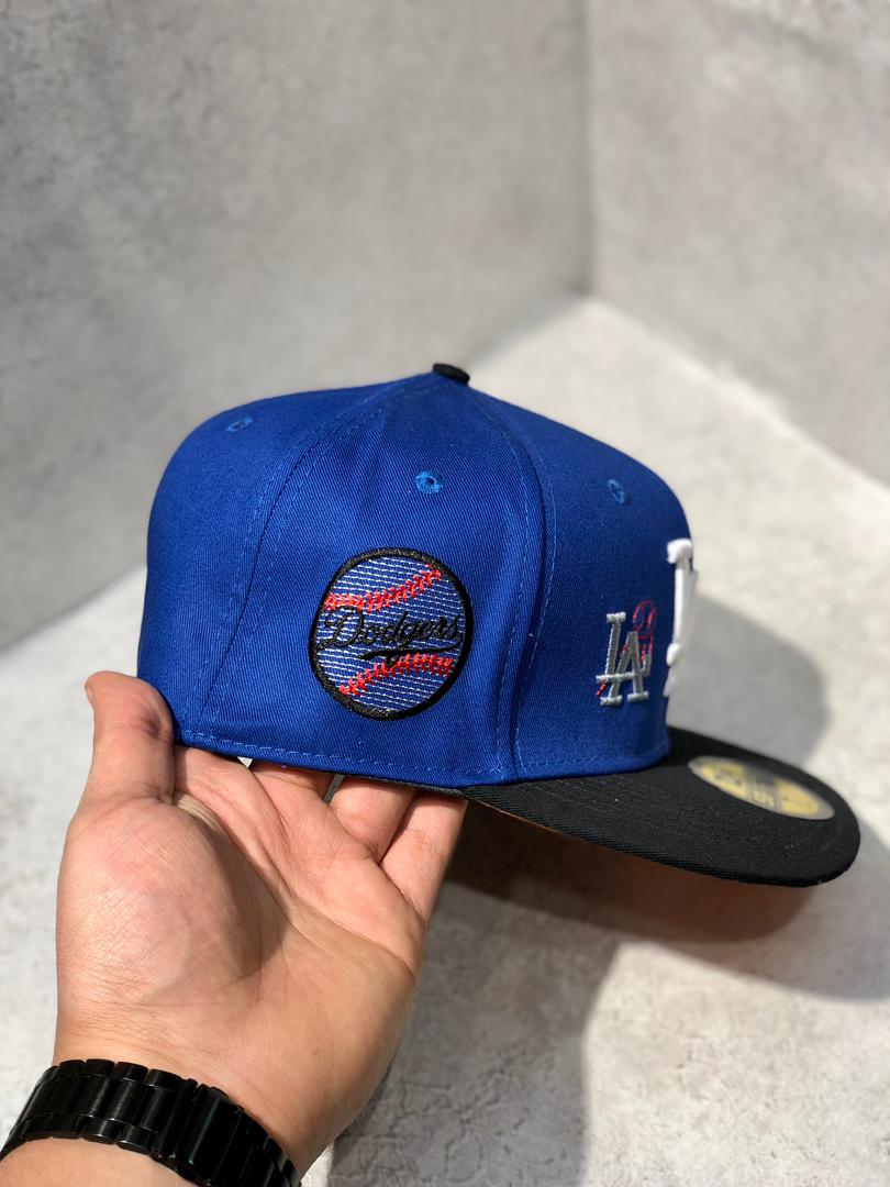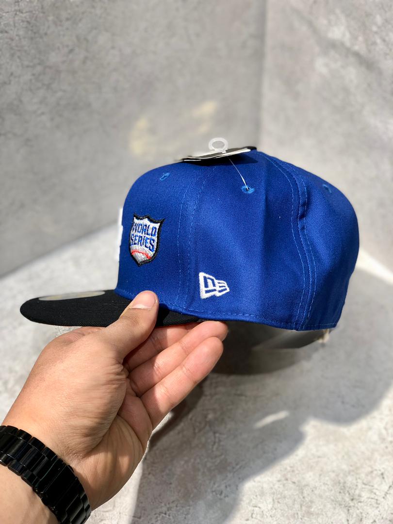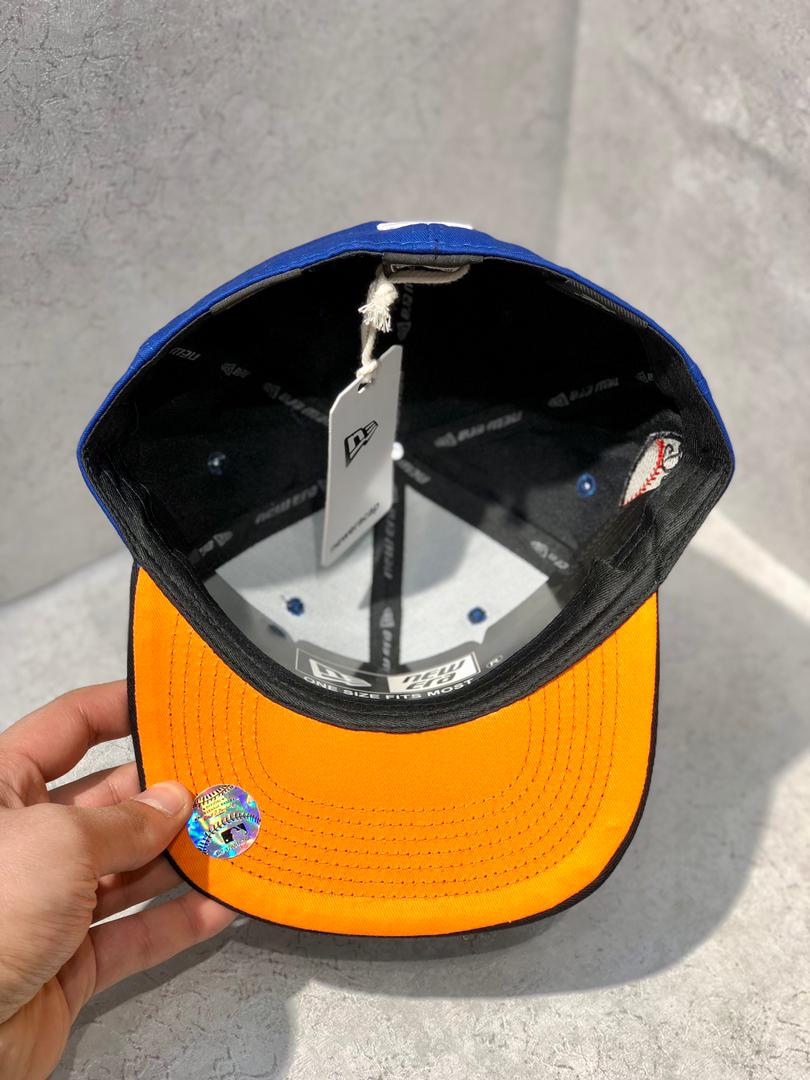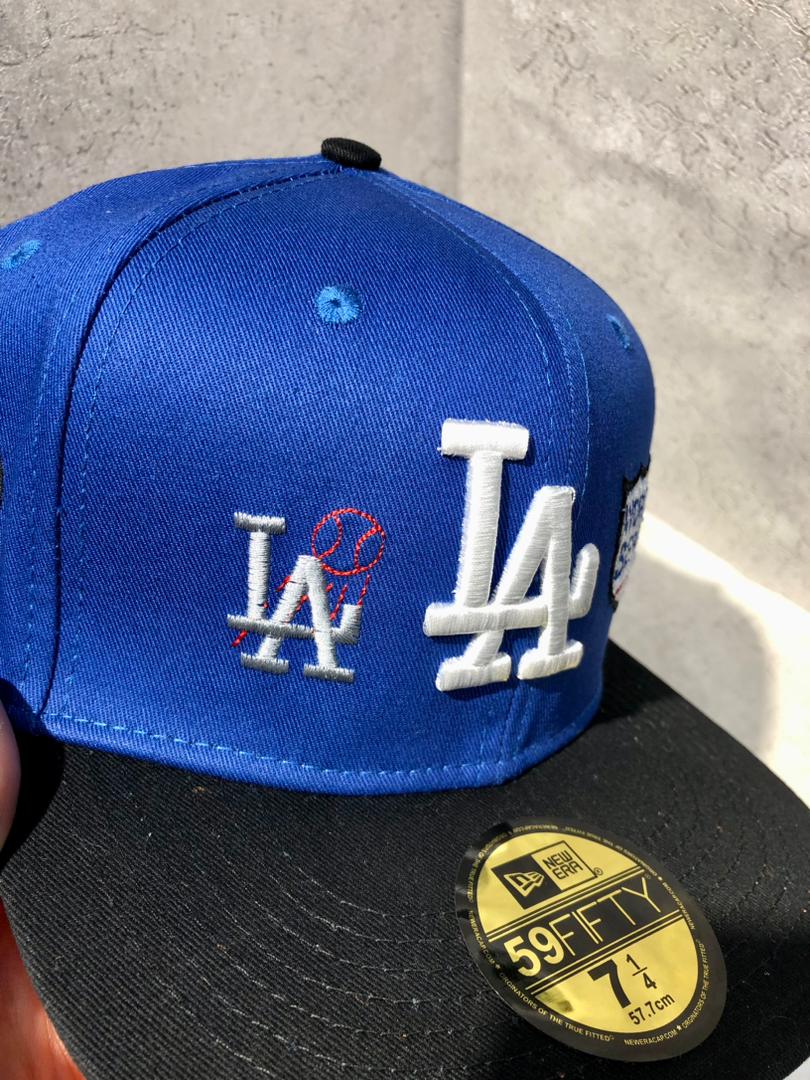 کلاه نقابدار بیسبالی کپ برند نیو ارا سایز 1/4 7 طرح LA (لس آنجلس) رنگ مشکی آبی