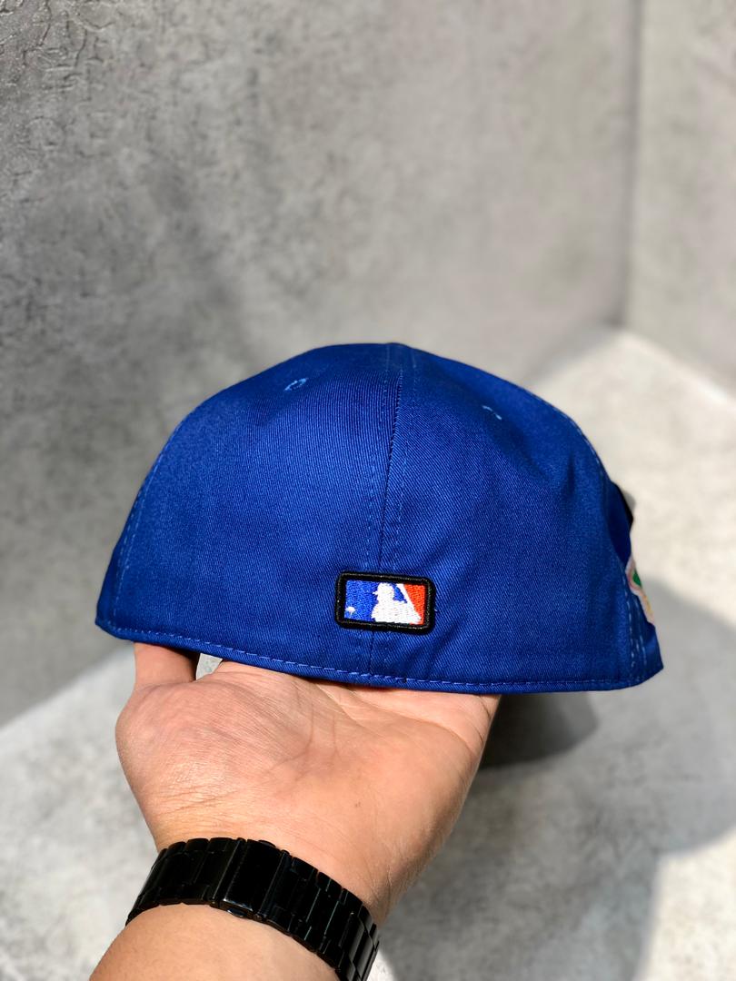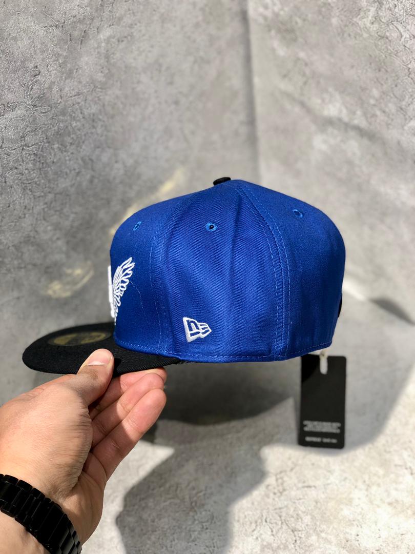 کلاه نقابدار بیسبالی کپ برند نیو ارا سایز 3/8 7 طرح LA فرشته (لس آنجلس) رنگ آبی کاربنی و مشکی